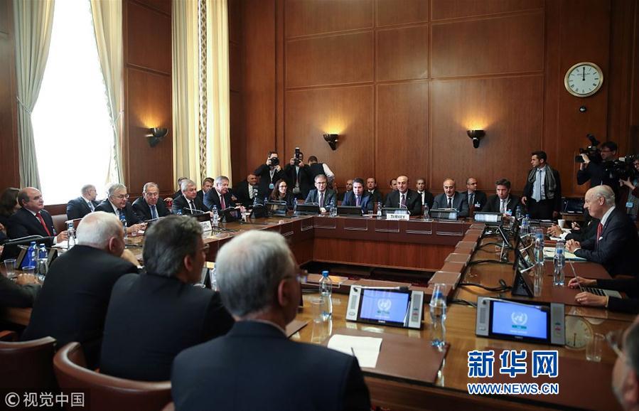 當(dāng)?shù)貢r間2018年12月18日,瑞士日內(nèi)瓦,俄羅斯、土耳其、伊朗三國外長與聯(lián)合國敘利亞問題特使一同出席會議,就成立敘利亞憲法委員會進行討論。(圖片來源:視覺中國)