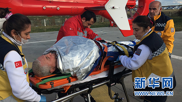 1月7日,在土耳其薩姆松,救援人員準備用直升機運送受傷船員。 新華社發(fā)