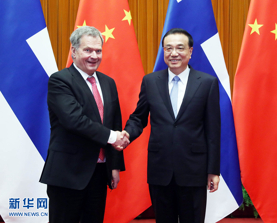 李克強(qiáng)表示,中芬關(guān)系長期以來保持良好穩(wěn)定發(fā)展,走在中國同西方國家關(guān)系的前列。昨天,習(xí)近平主席同總統(tǒng)先生舉行了富有成果的會談,共同規(guī)劃兩國關(guān)系未來發(fā)展。中方愿同芬方繼續(xù)努力,推動中芬合作取得更多新成果,為中芬關(guān)系不斷注入新動力。