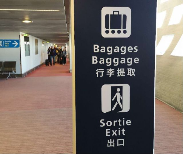 戴高樂國際機場內(nèi)的中文提示語。新華社記者 孫浩 攝
