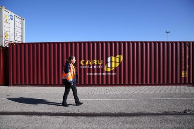 這是2019年3月5日,裝載有中國商品的集裝箱從中國武漢發(fā)出后,經(jīng)由中歐班列運輸?shù)诌_法國里昂。新華社記者 唐霽 攝