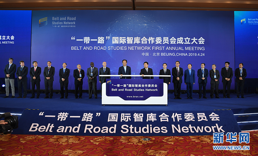 4月24日,由新華社研究院聯合15家中外智庫共同發(fā)起的“一帶一路”國際智庫合作委員會在北京宣告成立。這是“一帶一路”國際智庫合作委員會理事長、新華社社長、新華社研究院院長蔡名照等共同見證“一帶一路”國際智庫合作委員會官網(www.brsn.net)上線。 新華社記者 金良快 攝