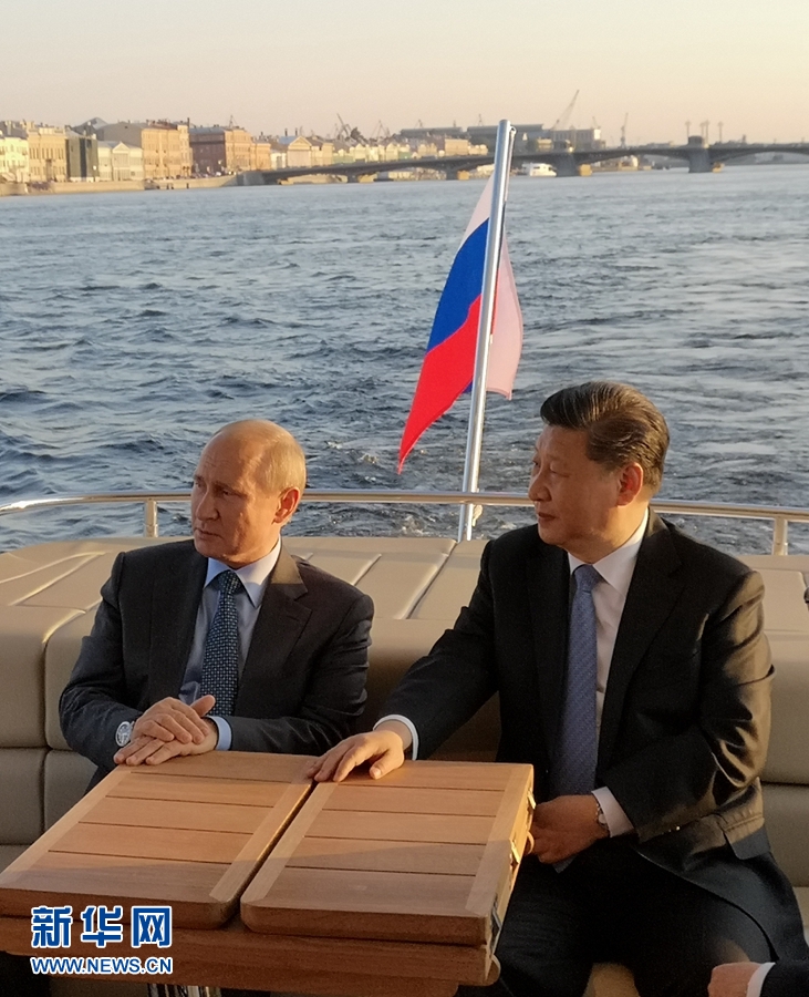 6月6日,國家主席習近平在圣彼得堡同俄羅斯總統(tǒng)普京再次舉行會晤。普京邀請習近平共同乘船游覽涅瓦河。新華社記者 李學仁 攝
