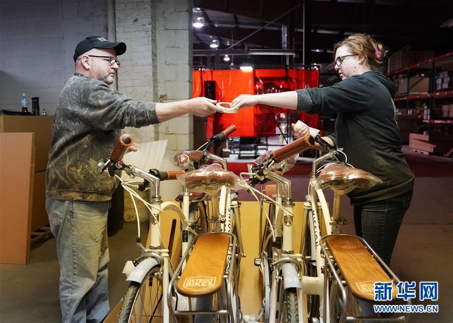 2019年5月21日,工作人員在美國(guó)密歇根州底特律市一家自行車(chē)廠工作。新華社記者 劉杰 攝