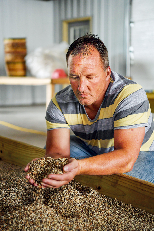 由于美國(guó)一些人挑起經(jīng)貿(mào)摩擦,美國(guó)農(nóng)產(chǎn)品遭到其他貿(mào)易伙伴反制,出口市場(chǎng)前景黯淡。圖為美國(guó)威斯康星州沃索市近郊的農(nóng)戶喬·海爾愁容滿面地捧起西洋參種子查看,希冀經(jīng)貿(mào)摩擦早日結(jié)束。 新華社記者 劉杰/攝