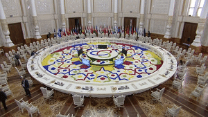 15日上午,杜尚別納烏魯茲宮,習(xí)主席出席亞洲相互協(xié)作與信任措施會(huì)議第五次峰會(huì)。圓桌會(huì)議開始后,亞信主席國(guó)元首拉赫蒙總統(tǒng)邀請(qǐng)習(xí)主席第一個(gè)發(fā)言。