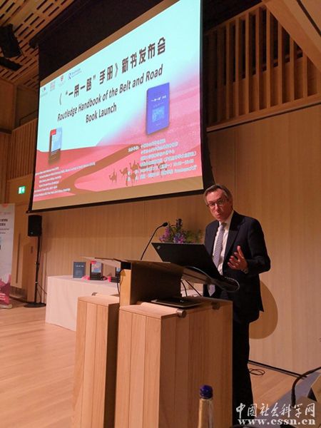 趙劍英首先對(duì)《“一帶一路”手冊(cè)》英文版的出版發(fā)行表示祝賀,作為《“一帶一路”手冊(cè)》中文版的發(fā)起者和出版方,他介紹,由中國(guó)社會(huì)科學(xué)出版社和英國(guó)羅得里奇出版社共同策劃的《“一帶一路”手冊(cè)》是全球首部以“一帶一路”倡議為主要內(nèi)容的百科讀本。這部手冊(cè)在第二屆一帶一路國(guó)際合作高峰論壇現(xiàn)場(chǎng)展示中獲得熱烈反響。內(nèi)容涉及“一帶一路”倡議的歷史傳承、產(chǎn)生與框架、“五路”、“五通”、六大經(jīng)濟(jì)走廊、中國(guó)特色大國(guó)外交理念、國(guó)際上相關(guān)行動(dòng)計(jì)劃等11個(gè)主要部分,涵蓋近年來(lái)與“一帶一路”有關(guān)的117個(gè)詞條。這部手冊(cè)全面、完整、系統(tǒng)地展現(xiàn)“一帶一路”倡議本身及與之有關(guān)的概念和領(lǐng)域,是迄今為止一帶一路理論和實(shí)踐初步成果的階段性匯總。為促進(jìn)國(guó)際社會(huì)深刻理解一帶一路偉大戰(zhàn)略構(gòu)想提供了學(xué)術(shù)引導(dǎo)價(jià)值。探索一帶一路的規(guī)律,建立規(guī)范型理論框架和恰逢其時(shí),英文版的出版必然會(huì)為一帶一路匯聚廣泛的國(guó)際共識(shí),為構(gòu)建人類命運(yùn)共同體添磚加瓦。據(jù)趙劍英社長(zhǎng)介紹,社科出版社在一帶一路研究英文譯介出版發(fā)行的基礎(chǔ)上,未來(lái)還將增進(jìn)西語(yǔ)、葡語(yǔ)、阿拉伯語(yǔ)、俄語(yǔ)等一帶一路沿線語(yǔ)種譯介出版,為一帶一路行穩(wěn)致遠(yuǎn)提供學(xué)理支撐。