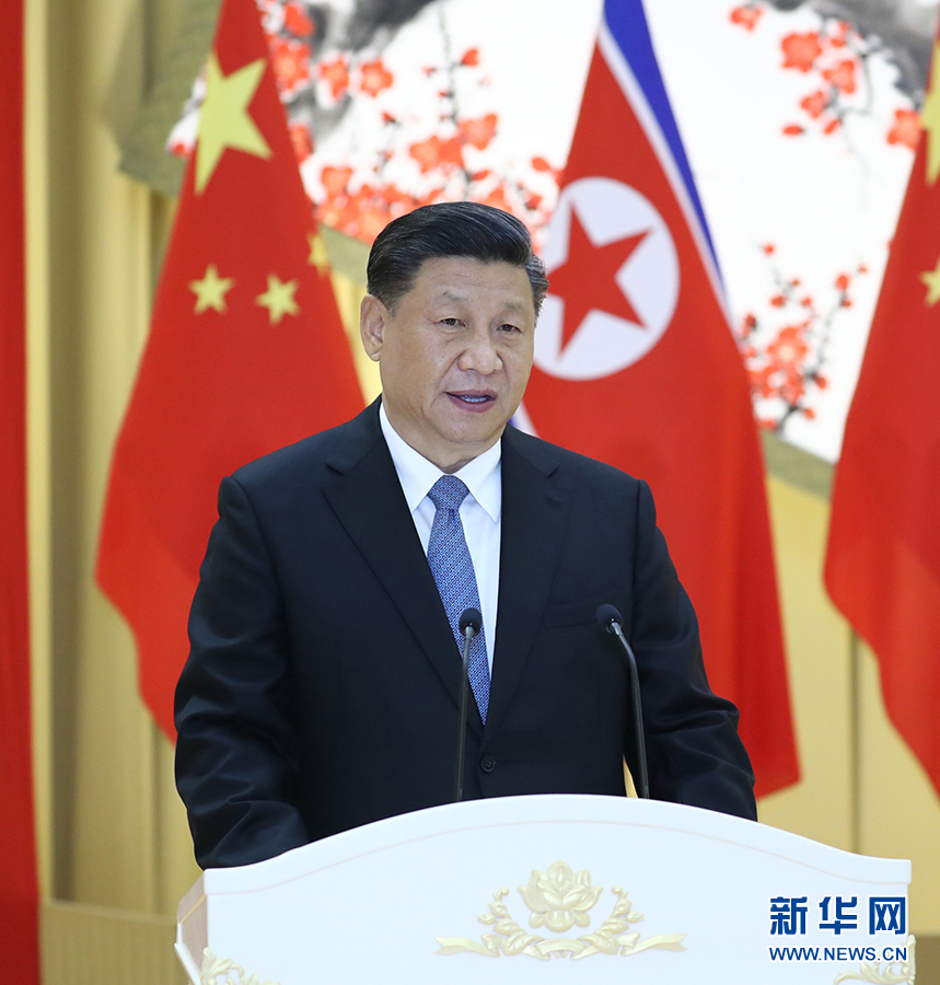 6月20日,中共中央總書記、國家主席習(xí)近平出席朝鮮勞動(dòng)黨委員長、國務(wù)委員會委員長金正恩在平壤木蘭館舉行的歡迎宴會。這是習(xí)近平在宴會上致辭。 新華社記者 鞠鵬 攝