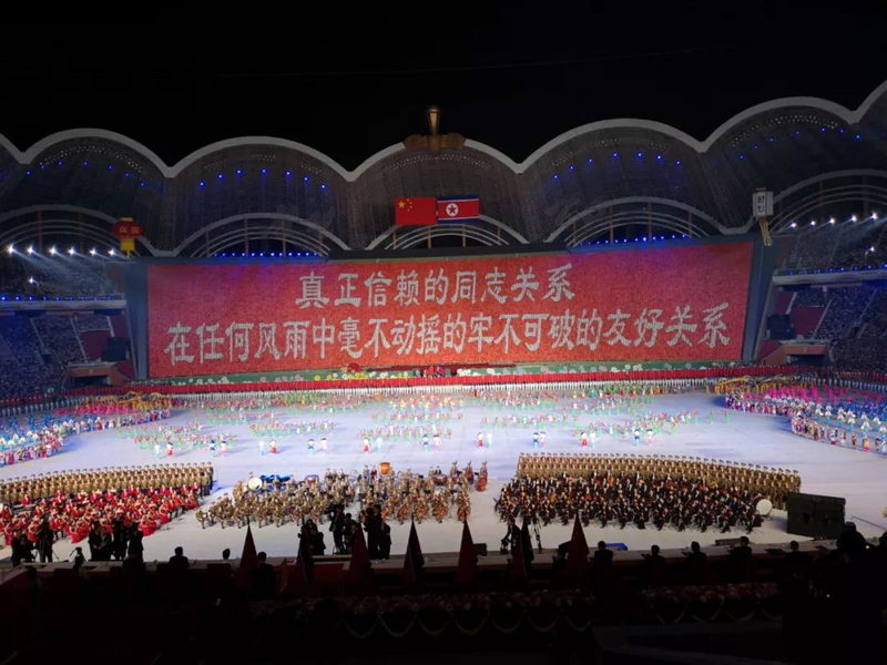 這臺演出為習(xí)近平此訪專門精心創(chuàng)作,數(shù)萬名朝鮮演員參加表演,朝鮮三大樂團首次同臺獻藝,整場演出氣勢恢宏、震撼感人。