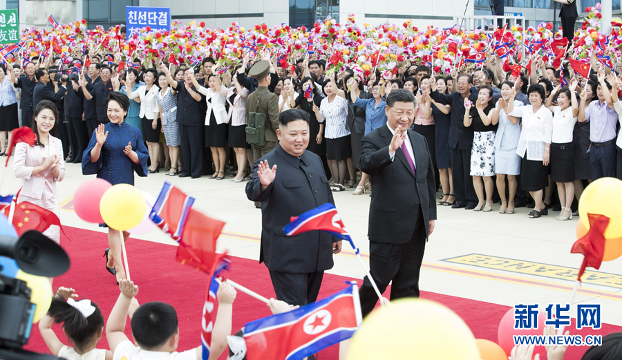 當?shù)貢r間下午3時許,在朝鮮民眾夾道歡送中,習近平和彭麗媛抵達機場,金正恩夫婦在下車處熱情迎接。朝鮮各界群眾在機場熱烈歡送,習近平向他們揮手致意。軍樂隊奏中朝兩國國歌,習近平在金正恩陪同下檢閱了朝鮮人民軍三軍儀仗隊。朝鮮少年兒童向習近平夫婦獻花。習近平同朝方前來送行的高級官員一一握手告別。在專機舷梯旁,習近平同金正恩緊緊握手話別。習近平夫婦邁上舷梯,在機艙門口轉(zhuǎn)身,向金正恩夫婦揮手告別。