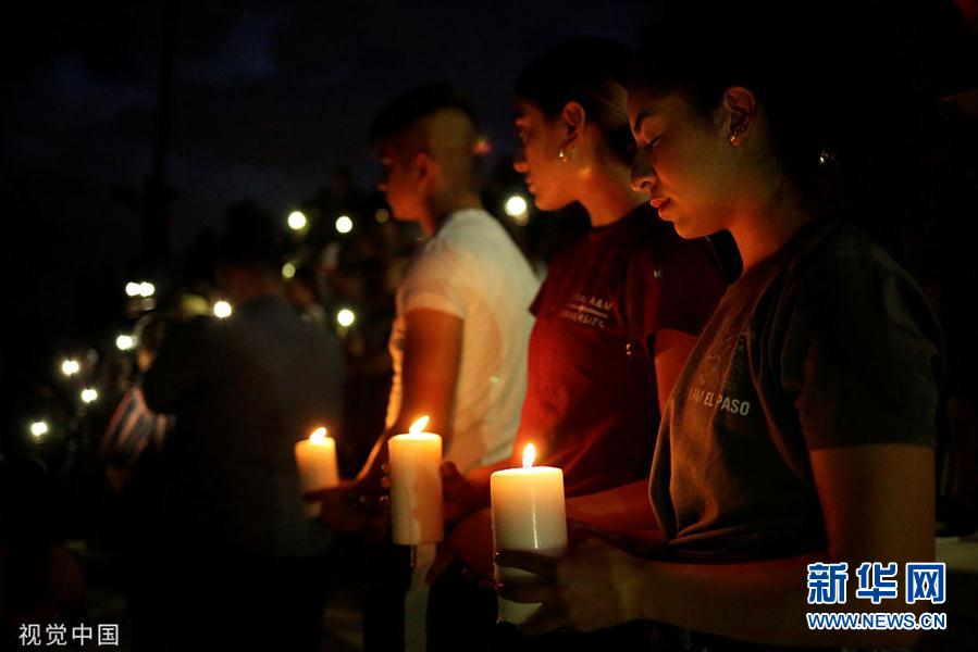 當?shù)貢r間8月3日,美國得克薩斯州埃爾帕索,當?shù)孛癖妳⒓邮匾够顒樱磕钣鲭y者。當?shù)匾患页邪l(fā)生嚴重槍擊案。據(jù)美國有線電視新聞網(wǎng)(CNN)最新消息,埃爾帕索市警察局長格雷格·艾倫稱,槍擊案已造成20人死亡,26人受傷,一名來自得克薩斯州艾倫市的21歲白人男子目前已被拘捕。(圖片來源:視覺中國)