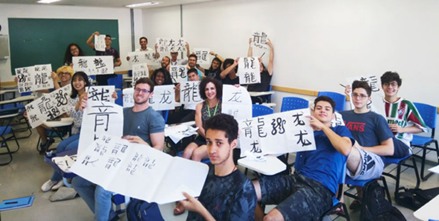 巴西學(xué)生在孔子學(xué)院體驗(yàn)中國(guó)文化。巴西有10所孔子學(xué)院,是擁有孔子學(xué)院數(shù)量最多的拉美國(guó)家。
