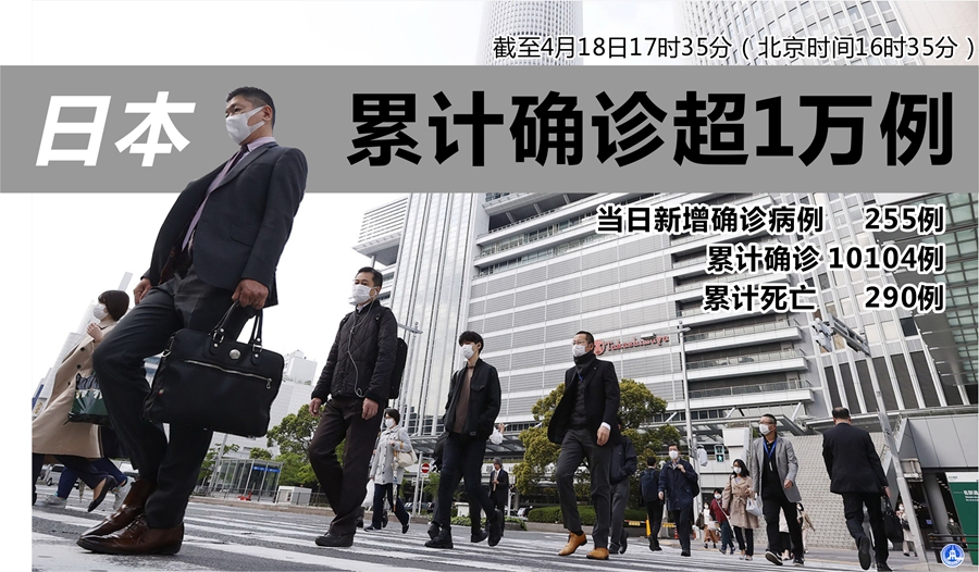 新華社東京4月18日電(記者華義)據(jù)日本廣播協(xié)會(NHK)電視臺的統(tǒng)計,截至18日17時35分(北京時間16時35分),日本當(dāng)日新增確診病例255例,累計確診10104例;累計死亡290例。