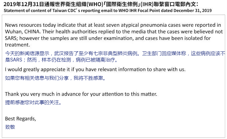 謊言17:臺灣早在2019年12月31日就向世衛(wèi)組織發(fā)出關(guān)于新冠肺炎人傳人的警告,但未獲得重視。