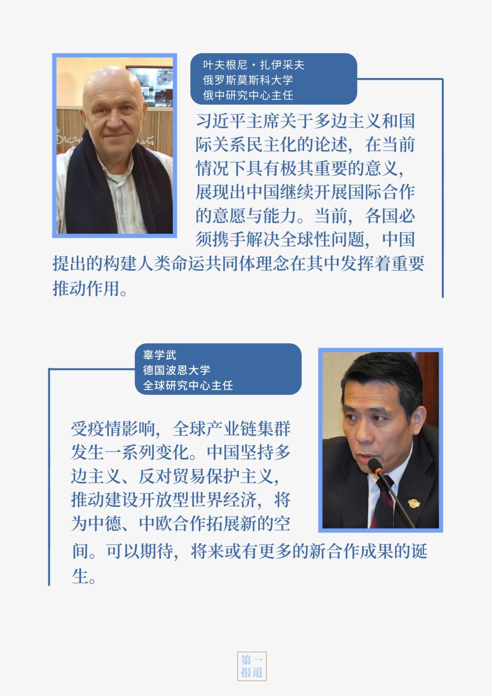 習(xí)近平強(qiáng)調(diào),中國(guó)將堅(jiān)持多邊主義和國(guó)際關(guān)系民主化,以開(kāi)放、合作、共贏胸懷謀劃發(fā)展,堅(jiān)定不移推動(dòng)經(jīng)濟(jì)全球化朝著開(kāi)放、包容、普惠、平衡、共贏的方向發(fā)展,推動(dòng)建設(shè)開(kāi)放型世界經(jīng)濟(jì)。