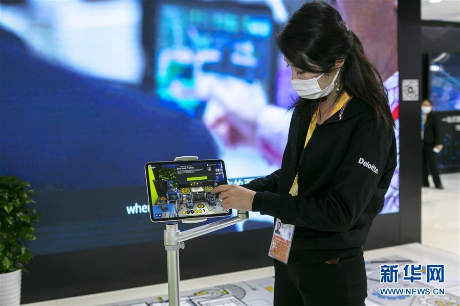 11月5日,在第三屆進(jìn)博會服務(wù)貿(mào)易展區(qū),德勤公司在中國首發(fā)“德勤小黃鴨智能工廠”,工作人員通過AR(增強(qiáng)現(xiàn)實)技術(shù)展示智能工廠的應(yīng)用場景。 新華社記者 王翔 攝