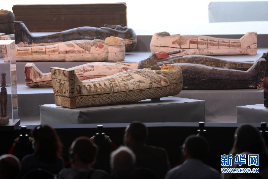這是11月14日在埃及吉薩拍攝的彩繪木棺。新華社發(fā)(艾哈邁德·戈馬攝)