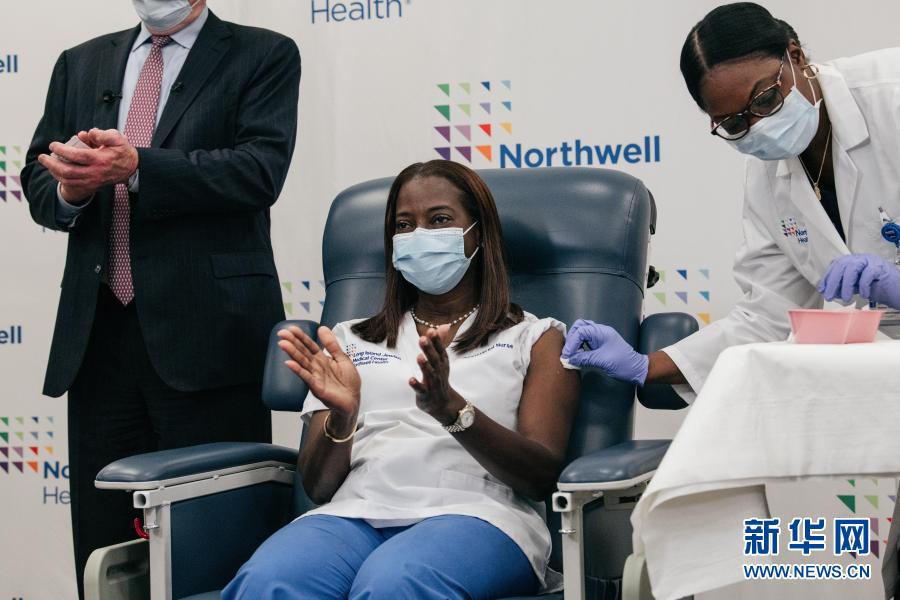 當(dāng)天上午,紐約長島猶太醫(yī)療中心重癥監(jiān)護(hù)室護(hù)士桑德拉·琳賽最先接種了疫苗,成為紐約州首名疫苗接種者,也是全美首批疫苗接種者之一。