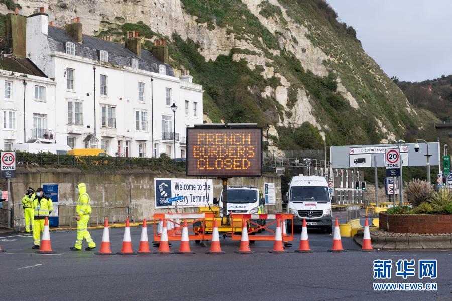 這是12月22日在英國多佛港拍攝的一塊顯示“法國邊境關(guān)閉”的電子屏。新華社發(fā)(雷伊·唐攝)