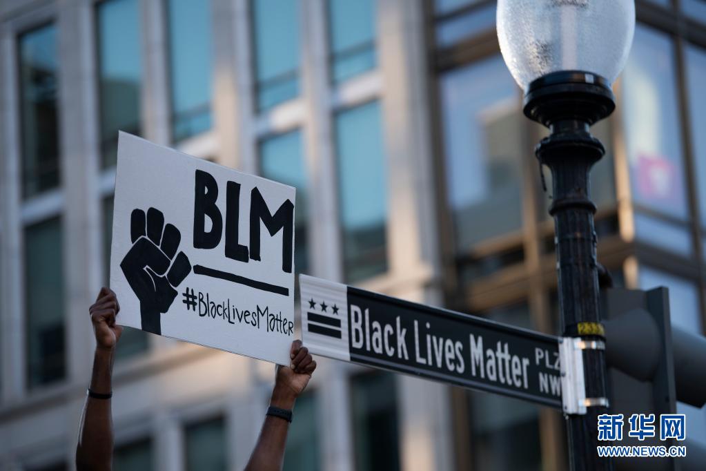 2020年6月8日,一名示威者在美國華盛頓白宮附近高舉“黑人的命也是命”的標語。 新華社記者 劉杰 攝