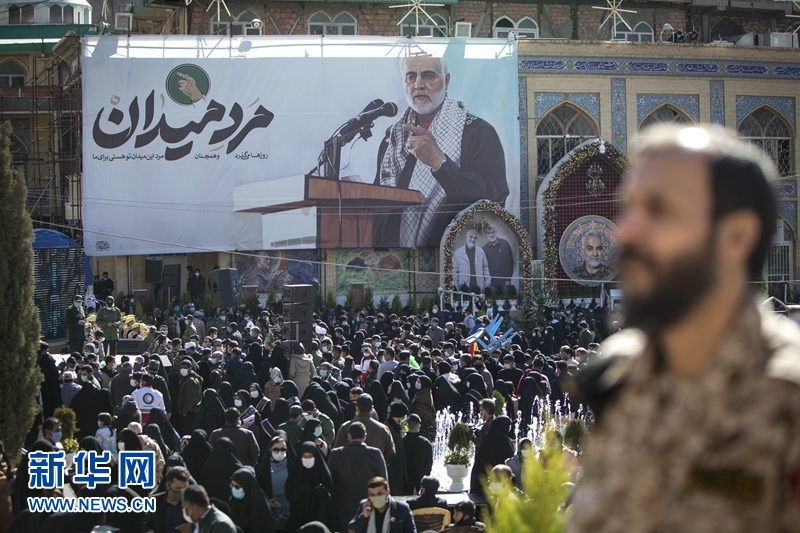 2021年1月2日,人們?cè)谖挥谝晾士藸柭囊了固m革命衛(wèi)隊(duì)下屬“圣城旅”指揮官蘇萊曼尼墓附近參加他的遇難周年悼念活動(dòng)。2020年1月3日,美國(guó)在伊拉克首都巴格達(dá)發(fā)動(dòng)襲擊,殺死伊朗伊斯蘭革命衛(wèi)隊(duì)下屬“圣城旅”指揮官蘇萊曼尼等人。新華社發(fā)(艾哈邁德·哈拉比薩斯攝)