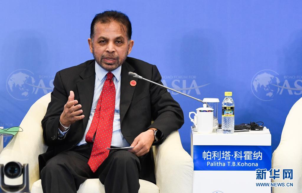 4月19日,斯里蘭卡駐華大使帕利塔·科霍納在“21世紀(jì)海上絲綢之路島嶼經(jīng)濟(jì)”分論壇上發(fā)言。新華社記者 楊冠宇 攝