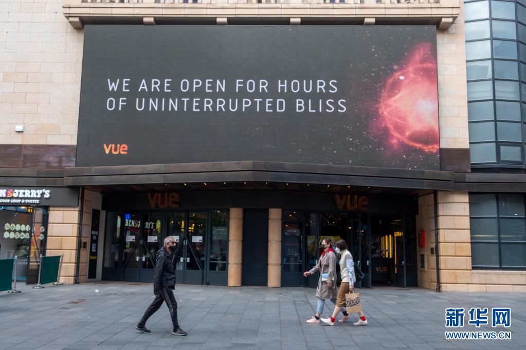 5月17日,人們從英國(guó)倫敦一家重開的電影院門前走過。