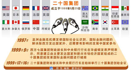 2009年9月,二十國(guó)集團(tuán)第三次峰會(huì)在美國(guó)匹茲堡舉行。會(huì)議在國(guó)際金融機(jī)構(gòu)改革治理結(jié)構(gòu)方面取得重大突破。與會(huì)領(lǐng)導(dǎo)人同意將國(guó)際貨幣基金組織和世行兩大機(jī)構(gòu)的份額向發(fā)展中國(guó)家分別轉(zhuǎn)移5%和3%,以提高發(fā)展中國(guó)家的代表性和發(fā)言權(quán)。
